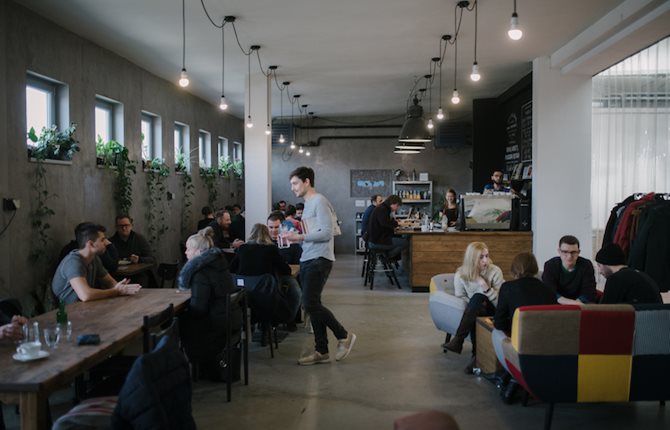 In my opinion people tend to sit in the cafés, rather than take the coffee with them. Which might mean that sitting in that space is more of an experience than drinking the coffee. That they might not care what kind of coffee they are drinking, and that they just need to spend time in a public space. As opposed to Prague or other big cities abroad where people take coffee as a necessity. They take it with them or they knock it back and they don’t need to sit and sip it for ages.